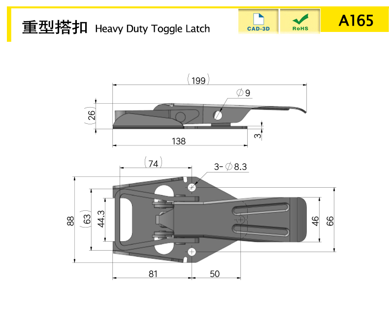 内置复位弹簧,可使扣体保持在开启或关闭状态